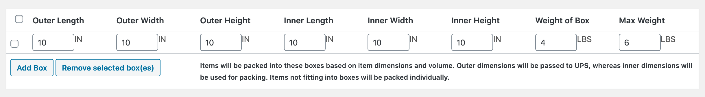 Custom Box Packing Settings