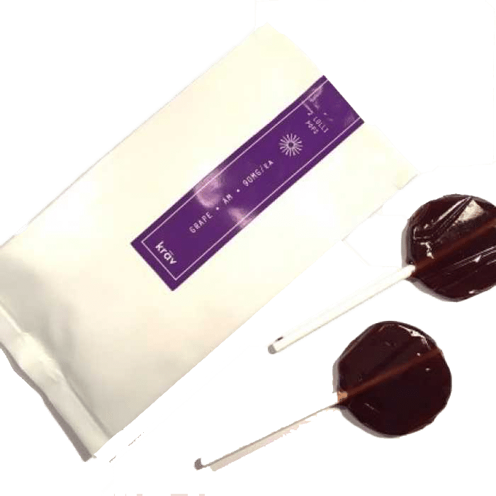 Krav Grape Indica Lollipop has THC ratio of 25mg to 150mg of delicious Edibles.